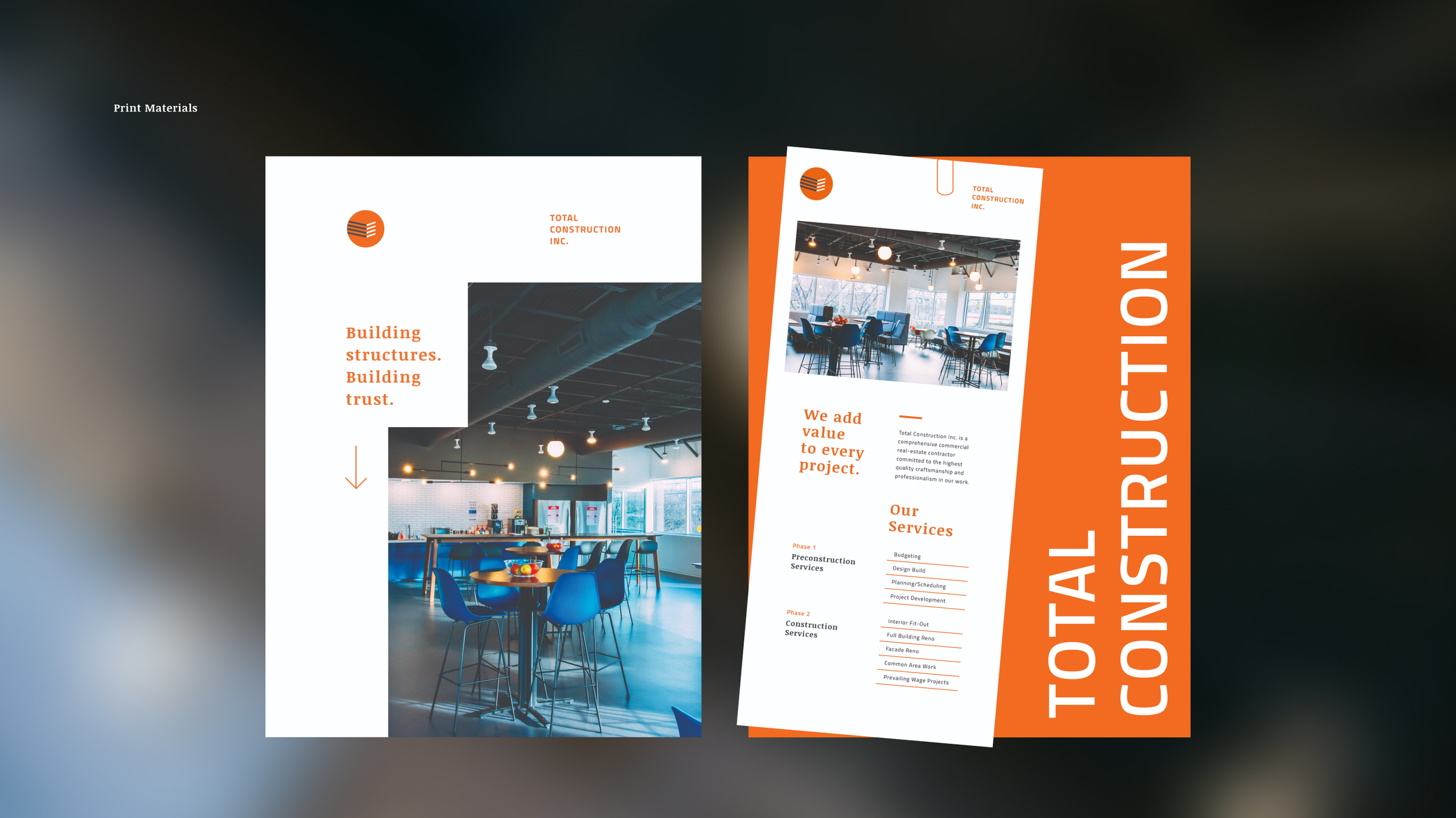 TCI needed a professional, consistent brand that accurately reflected the quality of their construction work. After several discovery sessions, I developed a branding package featuring a bold color palette and vertical typography to reflect the structures they build. The final package included a logo, print materials, signage, and a website.